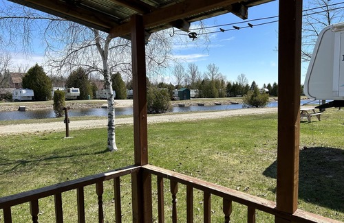 This spacious Classic trailer has a separate Master bedroom with a queen bed. The combination living and kitchen area has pull down sofa suitable for one adult sleeping arrangements . An excellent feature of this site is the large covered deck, perfect for outdoor dining. 3 piece trailer size bathroom.