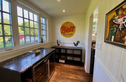 The beautifully decorated “guest bunkie” provides a romantic retreat separate from the main house. This cozy space has a comfortable king-size bed and is ideal for those who want acoustic isolation from the main house. It has its own heating and AC.