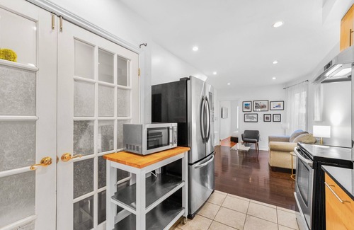 Welcome to our comfortable one-bedroom apartment in the heart of a charming neighbourhood. With hip coffee shops, parks and restaurants minutes away, you'll be immersed in the local atmosphere. Inside, the furniture creates a warm and cozy haven for relaxation, including a fully equipped kitchen and a comfortable dining and living room. Outside enjoy a backyard shaded by lush trees to have coffee. Whether you're a couple, solo traveler, or tourist, this space will be your home away from home.