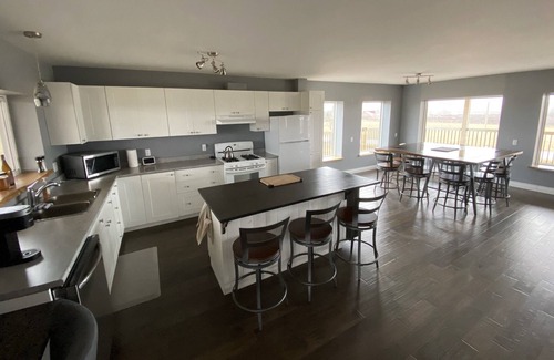Our custom built 2600 square foot eco-friendly chalet features in-floor heating on our first floor, a well equipped kitchen and gathering areas on the main floor (including wrap around deck) with an entertainment and games room in our loft. The chalet is both child and pet friendly with available swing gates on the main floor to limit access to the stairs as necessary for your little ones.